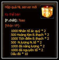 - Hoạt động dành cho máy chủ mới. Qua 30 ngày mở máy chủ mới hoạt động sẽ mất