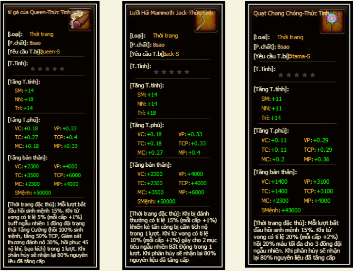 Các thời trang thức tỉnh của tất cả đồng đội sẽ được cập nhật dần trong thời gian sắp tới