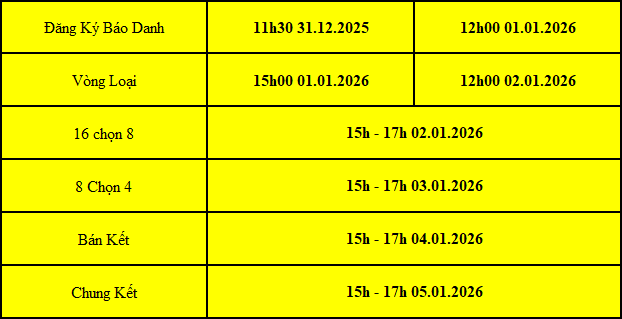 1. Phân chia ngẫu nhiên đối thủ, mỗi trận 1 ván. Mỗi ván cách nhau 20 phút.