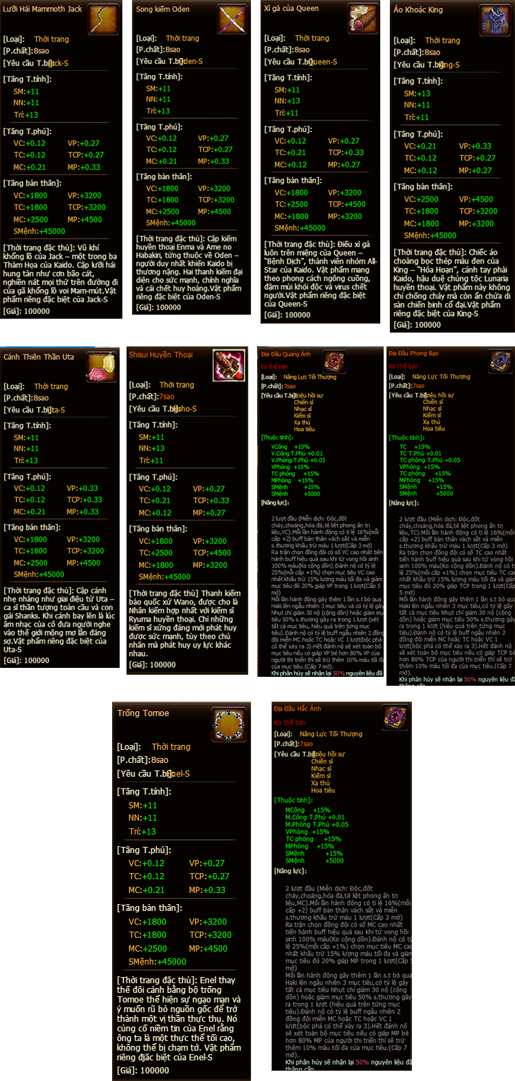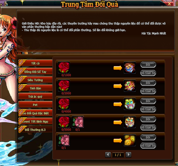- Khuyến cáo các thuyền trưởng nên đổi lần lượt từng vật phẩm , hạn chế đổi toàn bộ để đề phòng tránh tổn thất không đáng có