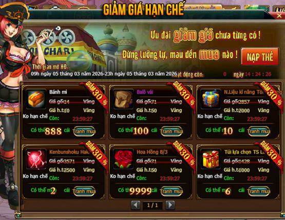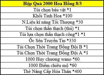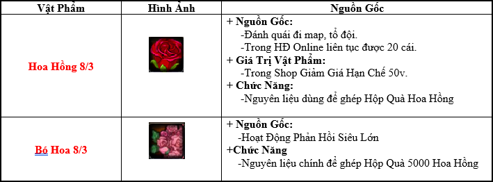 - Các thuyền trưởng có thể mua thêm trong shop Giảm Giá Hạn Chế Hoa Hồng 8/3: