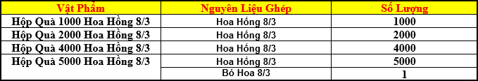 Công thức ghép các Hộp Quà Mừng 8/3: