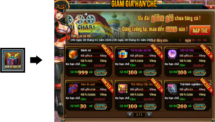 1. Trong thời gian hoạt động, Thuyền Trưởng thông qua giao diện hoạt động để tiến hành mua vật phẩm giảm giá trong game