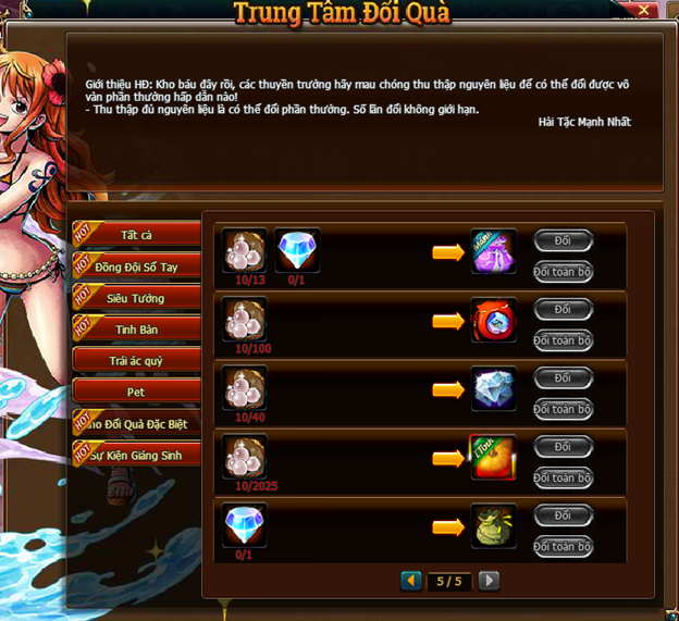 • Khuyến cáo các thuyền trưởng nên đổi lần lượt từng vật phẩm , hạn chế đổi toàn bộ để đề phòng tránh tổn thất không đáng có