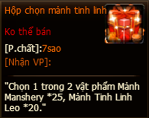 • Túi đồ đủ ô trống mới có thể lĩnh.