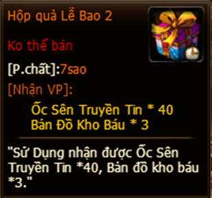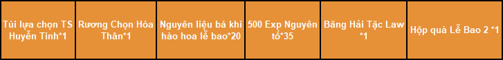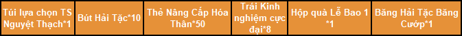 2. Tất cả phần thưởng của hoạt động, đều phát thẳng vào trong túi đồ nhân vật