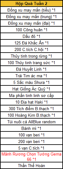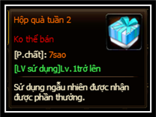 2. Sử dụng “Hộp Quà Tuần 2” có thể nhận vật phẩm ngẫu nhiên (danh sách vật phẩm bên duới)