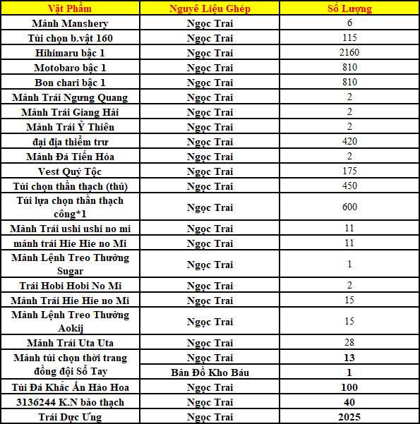 6.    Những vật phẩm loại vật phẩm đào vàng có thể xem thông qua “Xem bảo bối Bản đồ kho báu”