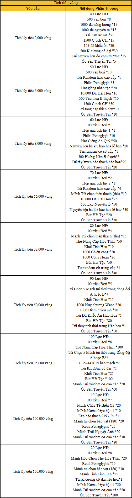 - Các Thuyền Trưởng vui lòng trước khi sự kiện kết thúc, nếu không nhận thưởng trước thời gian hoạt động đang diễn ra quà sẽ không nhận lại được. Mong các Thuyền Trưởng lưu ý.