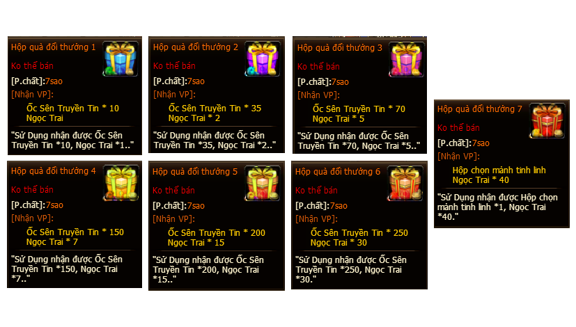 • Thông qua hoạt động Trung Tâm Đổi Quà để Ghép thành các phần thưởng: