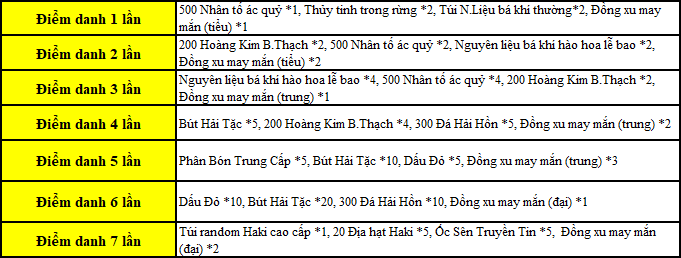 3. Giá trị phần thưởng sẽ tăng theo số ngày đăng nhập mỗi ngày của Thuyền Trưởng, hoạt động kết thúc sẽ không thể lĩnh bù