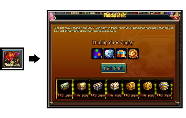 1. Trong thời gian diễn ra hoạt động, Thuyền Trưởng đăng nhập game trong 7 ngày để lĩnh thưởng