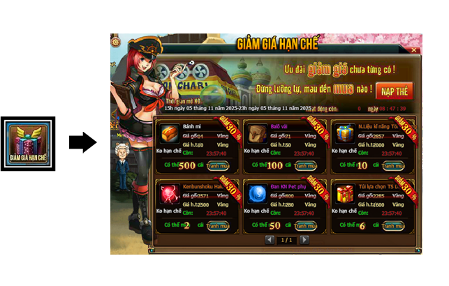 1.    Trong thời gian hoạt động, Thuyền Trưởng thông qua giao diện hoạt động để tiến hành mua vật phẩm giảm giá trong game
