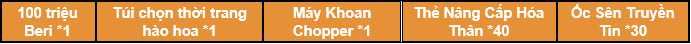 2. Trong thời gian diễn ra hoạt động, Thuyền Trưởng đăng nhập game ngày nào thì nhận thưởng ngày đó, các phần thưởng chỉ có thể nhận 1 lần