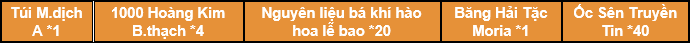 Chú ý: Thuyền Trưởng hãy đổi vật phẩm cần thiết trước, để tránh tổn thất tài nguyên.