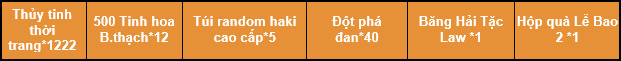 2. Tất cả phần thưởng của hoạt động, đều phát thẳng vào trong túi đồ nhân vật