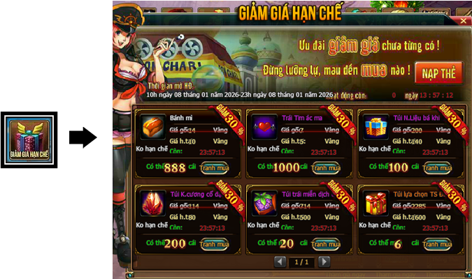 4. Mỗi loại vật phẩm giảm giá đều có giới hạn số lượng mua cụ thể