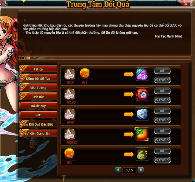 • Khuyến cáo các thuyền trưởng nên đổi lần lượt từng vật phẩm , hạn chế đổi toàn bộ để đề phòng tránh tổn thất không đáng có