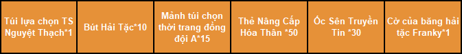 1. Trong thời gian diễn ra hoạt động, Thuyền Trưởng tiêu 1 vàng thì nhận được 1 tích điểm, tích điểm có thể dùng để đổi vật phẩm tương ứng