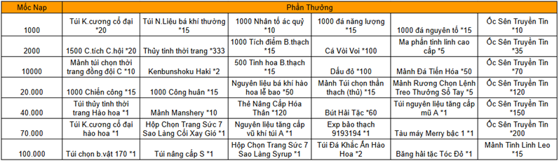 Trong thời gian diễn ra hoạt động, mức nạp thẻ tích lũy của Thuyền Trưởng đạt 8000 vàng thì có thể lĩnh toàn bộ phần thưởng trong giao diện hoạt động.