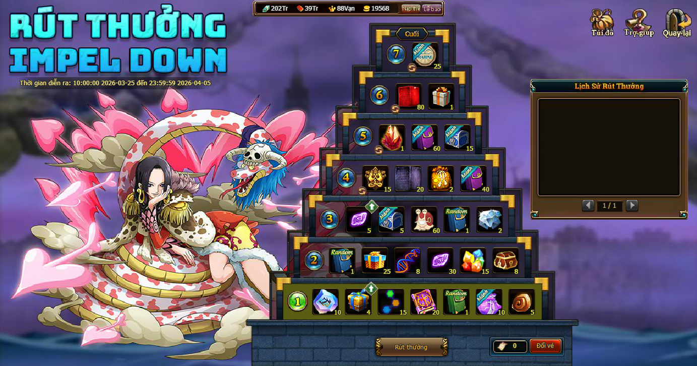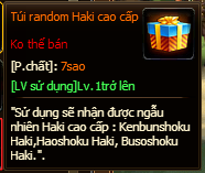 100 Công huân *20 Túi random haki cao cấp *3 Mảnh túi chọn bảo vật (180) *50