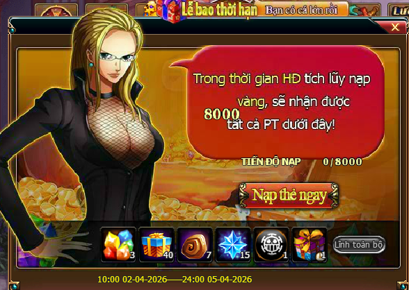 Thời gian: 10:00 ngày 02.04.2026 – 23:59 ngày 05.04.2026 (4 Ngày)