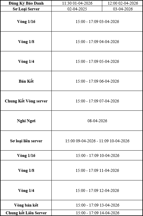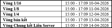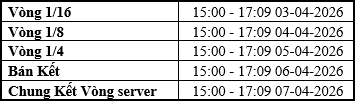 - Giai đoạn vòng loại: 15:00 09-04-2026 – 11:09 10-04-2026
