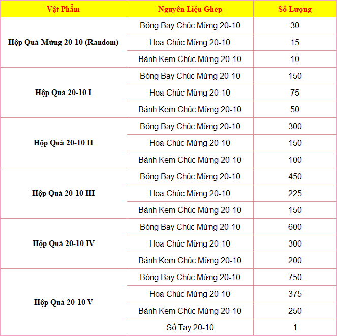 • Thông qua hoạt động Trung Tâm Đổi Quà để Ghép thành các phần thưởng: