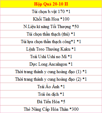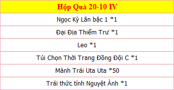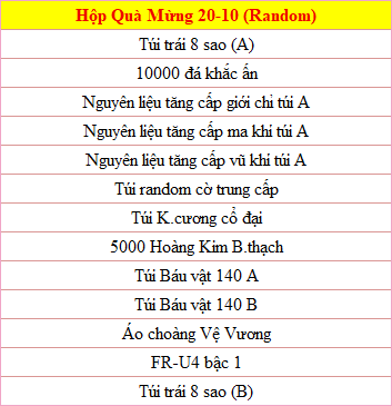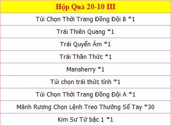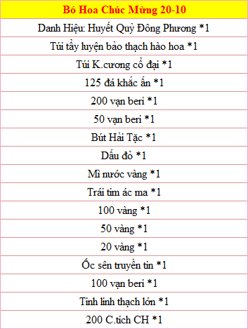 •  Phần thưởng sau khi sử dụng vật phẩm: