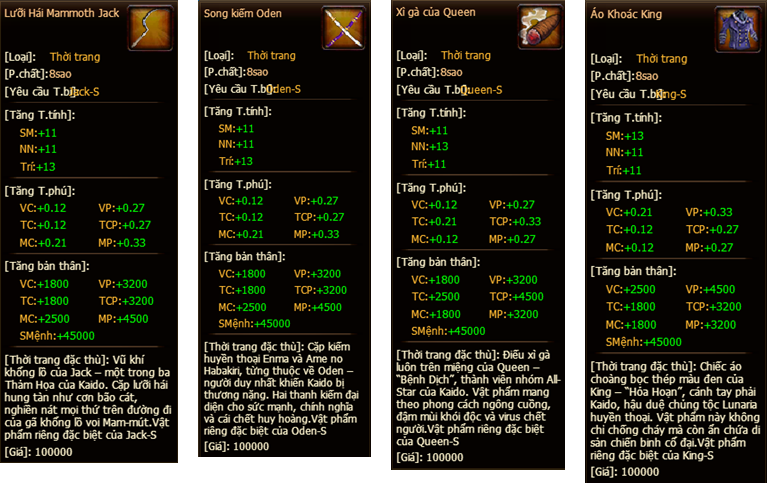 • Các thuyền trưởng có thể mua thêm trong shop map các vật phẩm này:
