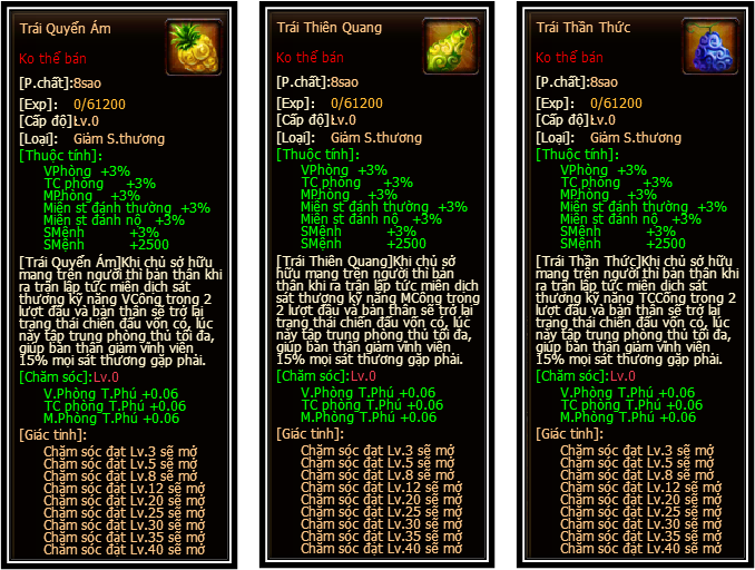 Trái Quyển Ám                                Trái Thiên Quang                                Trái Thần Thức