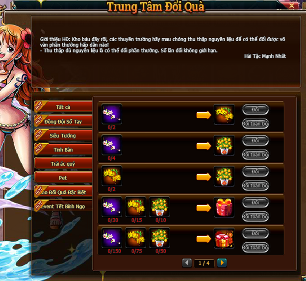 Khuyến cáo các thuyền trưởng nên đổi lần lượt từng vật phẩm , hạn chế đổi toàn bộ để đề phòng tránh tổn thất không đáng có