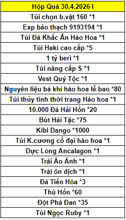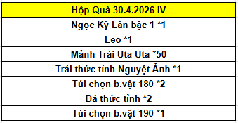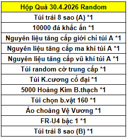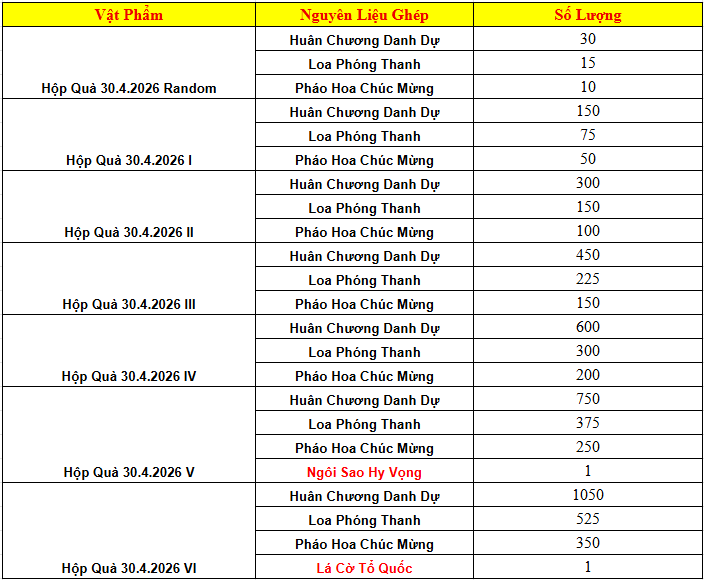 Công thức ghép các Hộp Quà 30.4.2026:
