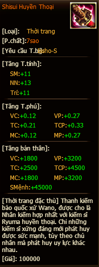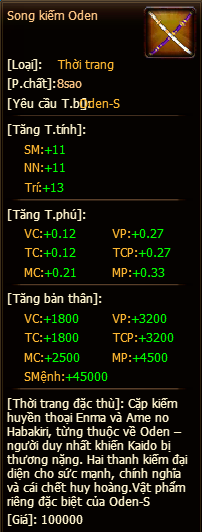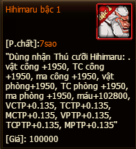 Phần thưởng sau khi sử dụng vật phẩm: