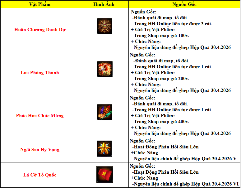 (Sự kiện đổi quà chỉ xuất hiện vào Dịp Lễ 30.4.2026)