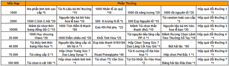 Trong thời gian diễn ra hoạt động, mức nạp thẻ tích lũy của Thuyền Trưởng đạt 8000 vàng thì có thể lĩnh toàn bộ phần thưởng trong giao diện hoạt động.
