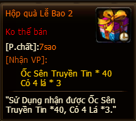 2. Tất cả phần thưởng của hoạt động, đều phát thẳng vào trong túi đồ nhân vật