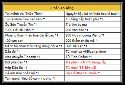 5. Vật phẩm của hoạt động sẽ gửi trực tiếp “Túi Đồ” của Thuyền Trưởng