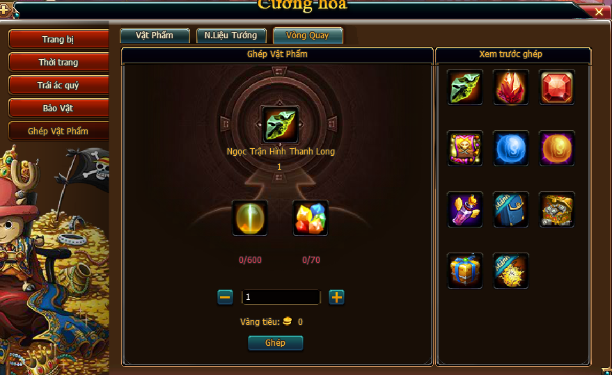 Thông qua hoạt động Cường Hóa → Ghép Vật Phẩm → Vòng Quay để ghép thành các phần thưởng: