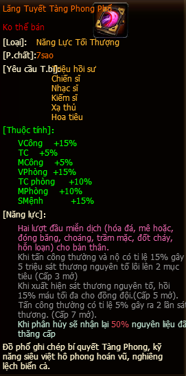 | 500 Exp Nguyên tố *30 | Thần Lực Hoàn *120 | Túi M. dịch B *2 |