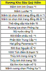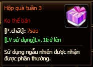 - Sử dụng “Hộp Quà Tuầ n 3” có thể nhận vật phẩm ngẫu nhiên (danh sách vật phẩm bên duớ i).