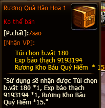 - Tất cả phần thưởng của hoạt động, đều phát thẳng vào trong ba lô nhân vật