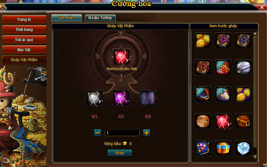 - Có những vật phẩm cần đổi vật phẩm A trước thì mới đổi được vật phẩm B (Khi Thuyền Trưởng rê chuột vào nút Đổi thì sẽ xuất hiện “Bạn cần đổi vật phẩm [A] trước”)