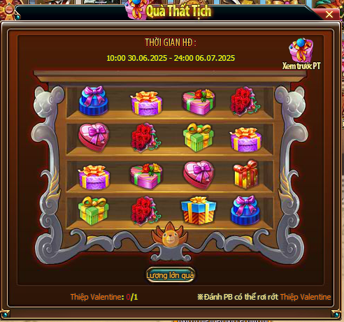 - Trong thời gian hoạt động diễn ra, Thuyền Trưởng đánh phụ bản sẽ có cơ hội nhận được “Thiệp Valentine”