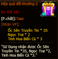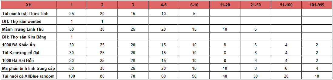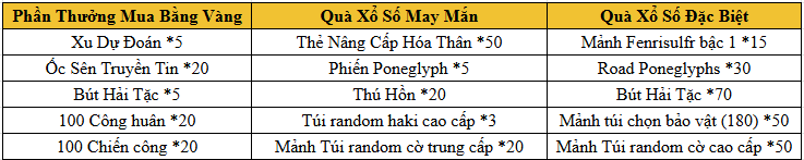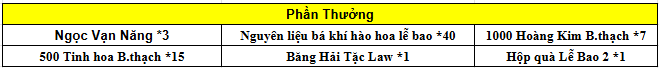 - Tất cả phần thưởng của hoạt động, đều phát thẳng vào trong túi đồ nhân vật