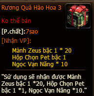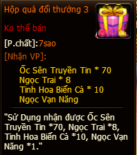 - Tất cả phần thưởng của hoạt động, đều phát thẳng vào trong ba lô nhân vật
