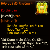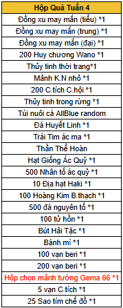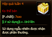 - Sử dụng “Hộp Quà Tuầ n 4” có thể nhận vật phẩm ngẫu nhiên (danh sách vật phẩm bên duớ i).