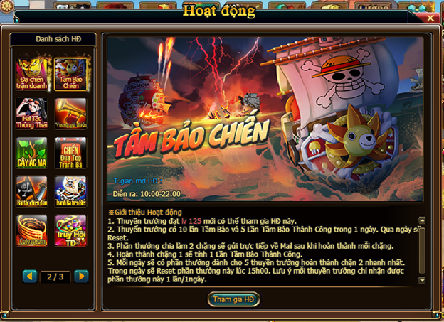 - Mỗi ngày sẽ có 2 mốc phần quà may mắn cho thuyền trưởng mốc 10:00 và 15:00