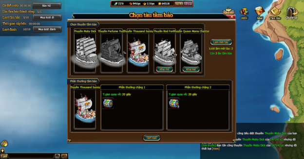 - Có thể Khai Mở trực tiếp tàu Tầm Bảo mong muốn, mỗi tàu Tầm bảo đều có giá vàng khác nhau