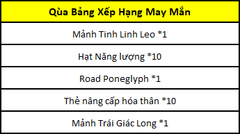 - Quà Bảng Xếp Hạng May Mắn: